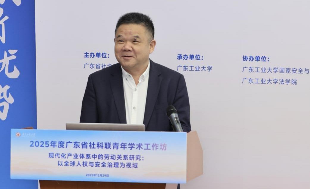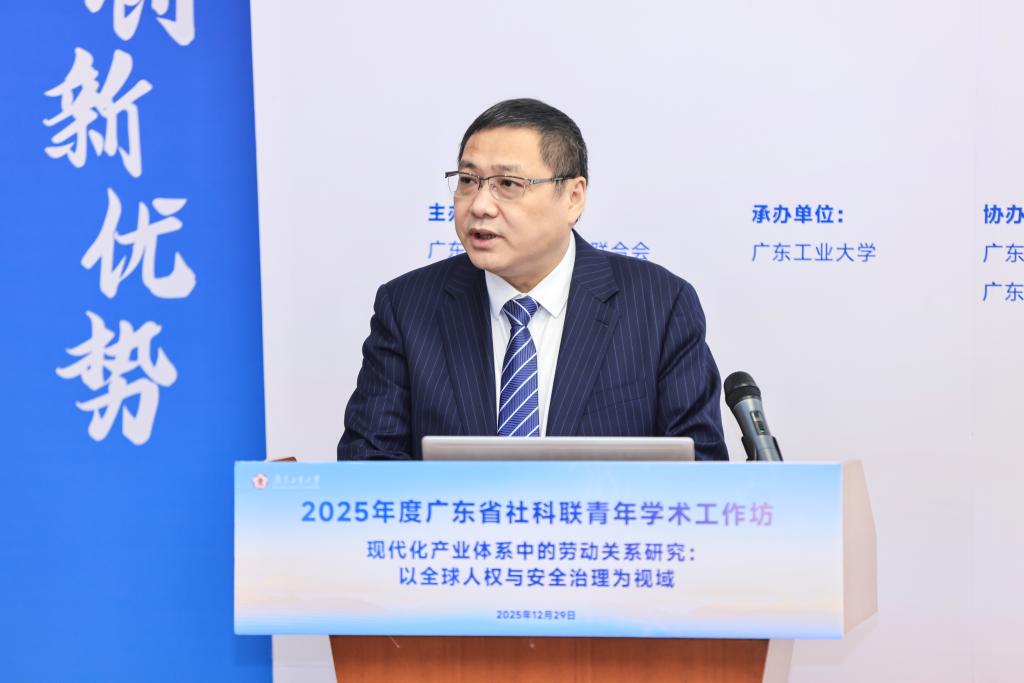 白建刚指出,广东工业大学作为省属工科高校的“排头兵”,始终坚持“依工强文”,推动人文社科与工程技术交叉融合。他介绍了学校近年来在学科建设、科研平台与人才培养等方面取得的重要进展,强调本次工作坊是学校服务广东制造业当家、助力现代化产业体系建设的具体实践,期望与会学者为构建中国特色和谐劳动关系贡献智慧。