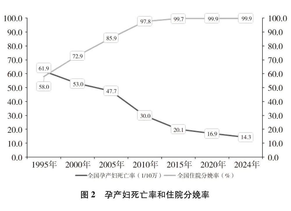 妇女健康水平大幅提高。2020年,妇女平均预期寿命已提高到80.9岁。2012年以来,全国住院分娩率持续稳定在99%以上,孕产妇系统管理率2024年达到94.9%,孕产妇死亡率从1995年的61.9/10万降至2024年的14.3/10万,下降了76.9%,远低于世界平均水平。中国妇幼健康核心指标(孕产妇死亡率、婴儿死亡率、5岁以下儿童死亡率)位居全球中高收入国家前列,提前实现联合国2030年可持续发展议程相关目标,被世界卫生组织列为妇幼健康高绩效的10个国家之一。